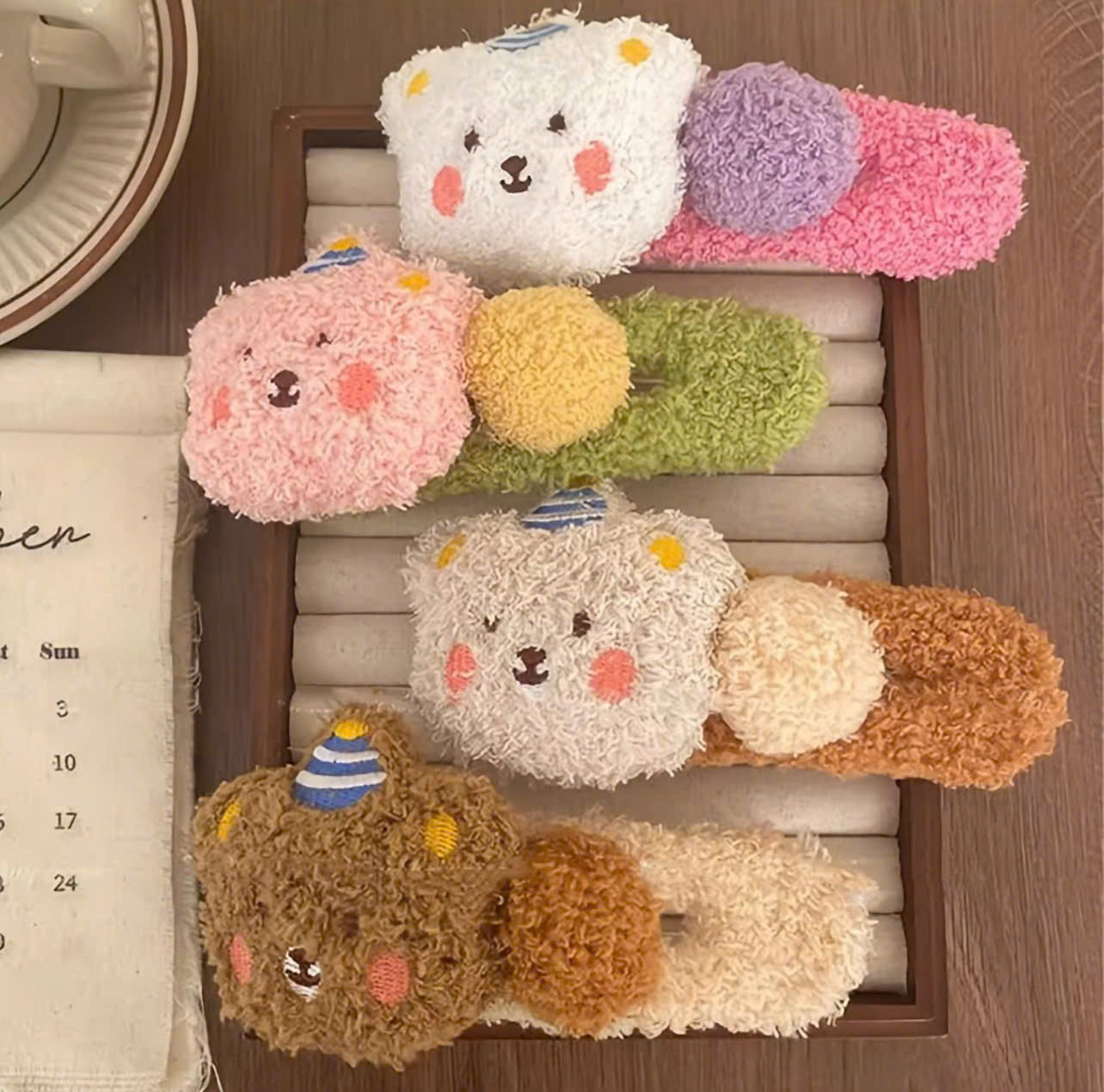 Các mẫu kẹp tóc hình gấu thường có nhiều màu sắc dễ thương như: